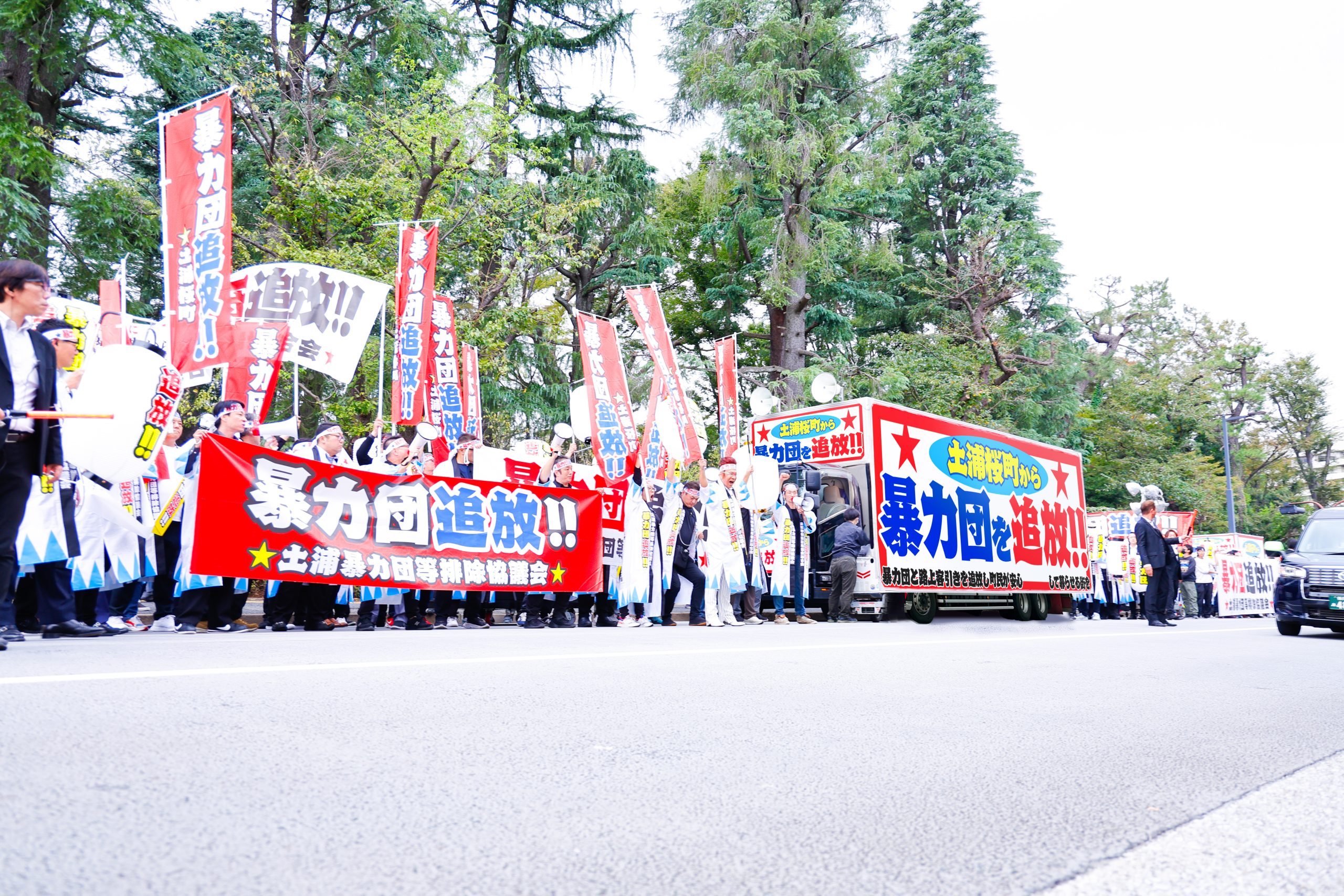 土浦市桜町で「暴排デモ」を行いました。
